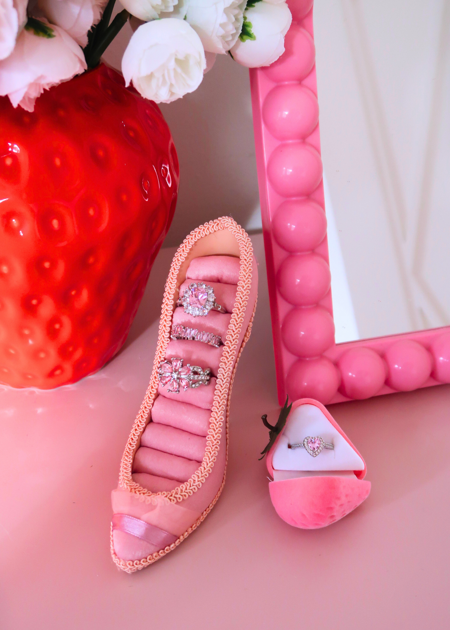 PINK AND WHITE SPARKLY FLOWER ring