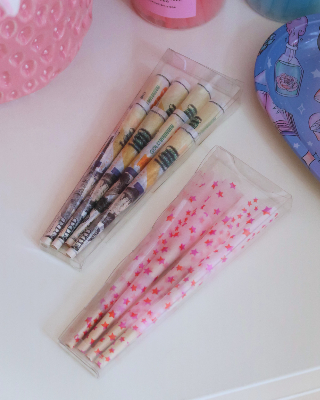 Pre rolled cones s růžovými hvězdičkami jsou cute af a ready to go